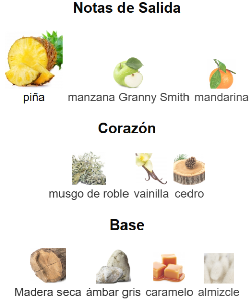 Categorías Para hombre, Para mujer, Perfumes afrutados, Perfumes amaderados, Perfumes cítricos, Perfumes dulces, Perfumes especiados, Unisex