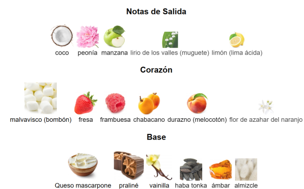 Categorías Para hombre, Para mujer, Perfumes afrutados, Perfumes cítricos, Perfumes dulces, Perfumes florales, Unisex
