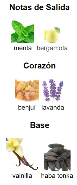 Categorías Para hombre, Perfumes cítricos, Perfumes dulces, Perfumes especiados, Perfumes florales