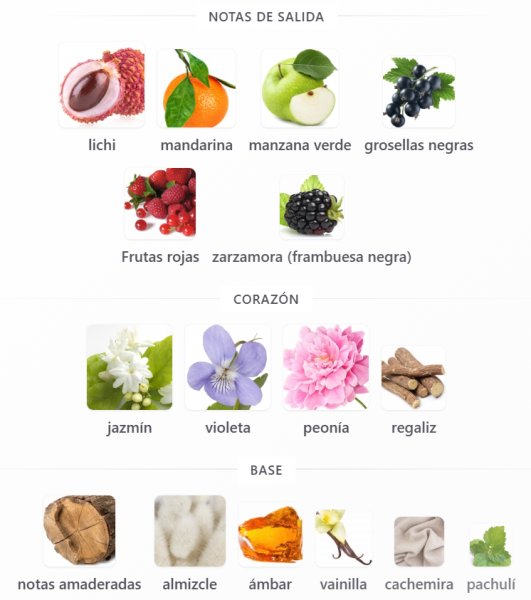 Categorías Para mujer, Perfumes afrutados, Perfumes cítricos, Perfumes dulces, Perfumes florales